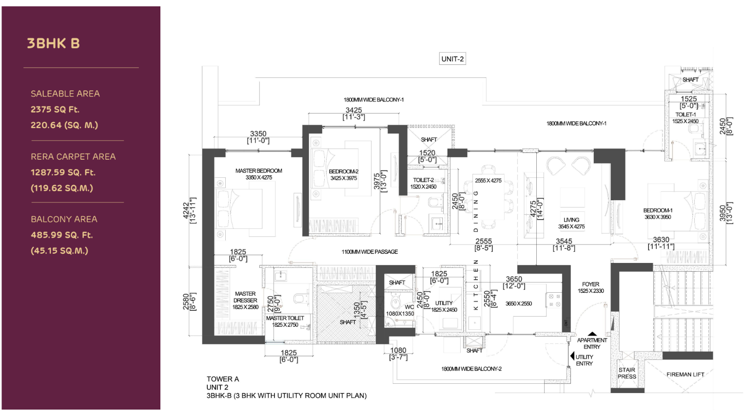 | 3 BHK | Approx. 2,375 sq.ft* | ₹3.75 Cr Onwards |